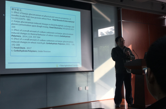 2017年12月4日上午9时,中国农业大学程永强教授来bw必威西汉姆联官网开展“魔芋葡甘露聚糖与面团各组分相互作用及对产品功能影响”学术报告,食品工程系何强教授、吕远平教授、迟原龙副教授、赵志峰副教授、卜迁副教授、钟凯博士、任尧博士等多名教师以及100余名研究生和本科同学参加。