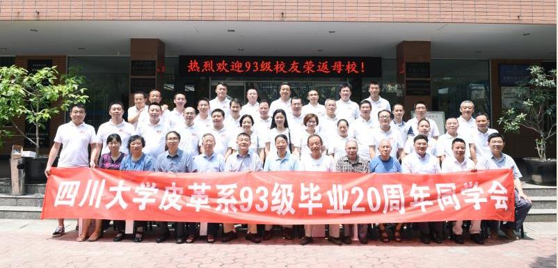 七月的成都,已然是一副炎炎盛夏的炙热景象。2017年7月23日上午,在四川大学轻纺与食品学院皮革楼2楼会议室,该校“93级皮革系毕业20周年同学会”的欢乐气氛似乎更加热烈。昔日同窗,亲不隔疏;师生欢聚,情更浓烈。一阵阵欢声笑语,飘向窗外,穿过长廊,飞向校园……四川大学皮革系93级共有58位同学,自1997年7月毕业以来,目前该系有一半以上的同学分别在国内外的皮革科研院所、高校和企业等单位从事与所学专业相关的工作,其中许多同学已成长为我国皮革行业的精英和中坚骨干。此次有31位同学从全国各地赶来参加了同学聚会。中国工程院院士、四川大学皮革系石碧教授,四川大学轻纺与食品学院刘晓虎书记,国家级教学名师、原四川大学轻纺与食品学院院长陈武勇教授,原四川大学轻纺与食品学院院长廖隆理教授,皮革化学与工程教育部重点实验室(四川大学)主任范浩军教授,四川大学皮革系副系主任张宗才教授,四川大学皮革系副系主任彭必雨教授,四川大学皮革系副系主任林炜教授,四川大学皮革系党支部书记程海明副教授,皮革系张廷有教授、刘洪谛教授、周华龙教授、骆鸣汉高工、杨淑娟老师等系领导和老师出席了“四川大学93级皮革系毕业20周年同学会”。