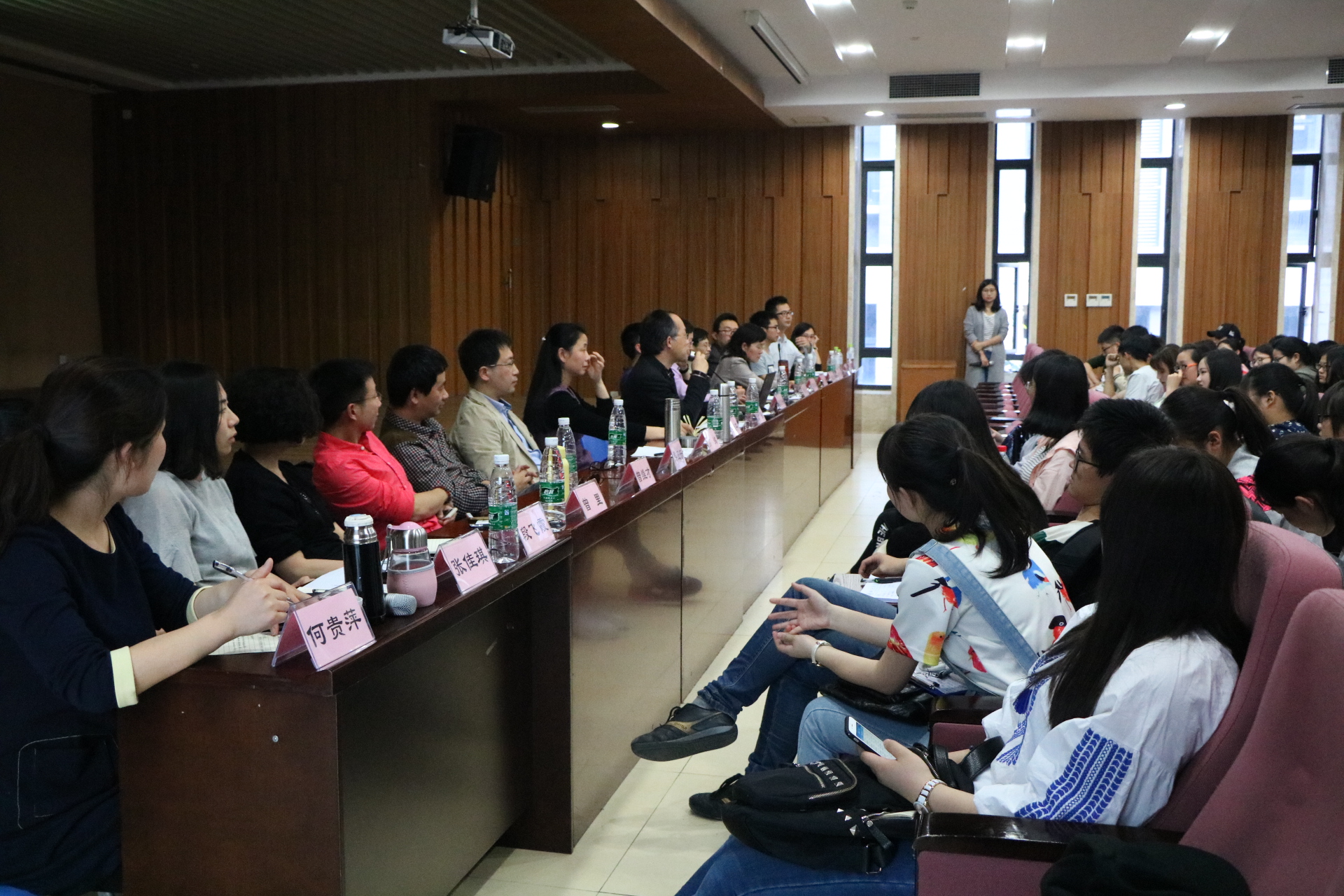 4月14日,食品工程系组织全体教师与食品科学与工程专业2015级和2016级全体学生在四川大学江安校区法学院报告厅举行了师生见面会,食品工程系副系主任贾利蓉副教授主持会议。食品工程系系主任何强教授首先分析了同学们现在的学习和生活状况,提出大家应该在繁忙的学习同时兼顾多姿多彩的大学生活,要有明确的方向并为之不断学习、思考和积累。接下来四川大学农产品加工研究院常务副院长赵志峰副教授从自己是食品专业毕业的学生说起,从多角度谈了自己对该专业和行业的感悟;贾利蓉老师就大学四年生涯规划谈了自己的看法,同时就目前同学们的学业情况作了总结和汇报,希望大家重视学业成绩。见面会全程穿插提问环节,同学们敞开心扉,就自己关心的问题向老师们提出疑问,老师们一一耐心解答。此次见面会以问卷调查作为结尾,通过调查,了解了同学们对课程结构和组成的看法、对教师授课方式的建议、对挂科原因的自我剖析、以及就业期望等。