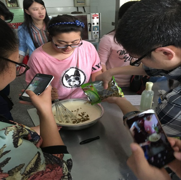 2016年5月8日下午2:30,由四川大学研究生会主办,四川大学轻纺与食品研分会、制造科学与工程学院研分会、计算机学院研分会承办的美好生活系列——蛋糕制作与西点品鉴活动在四川大学食品科学科普教育中心、四川大学望江校区纺工副楼205顺利举办。蛋糕制作在纺工楼烘焙实验室展开,由专业人士带领同学们对实验室安全知识进行学习后,开始了蛋糕制作的活动。虽然同学们都是第一次参加食品制作的活动,但动起手来却有模有样。蛋清的打发、蛋黄与面粉的混合,以及随后的混合搅拌,大家都干劲十足。最后在蛋糕烘焙出炉时,四溢的香气让同学们迫不及待得想要品尝一番。更有同学创意性地想出将蛋糕切成三层,在其间涂抹果浆。蛋糕制作随着大家满足的笑容接近了尾声。由一点一客食品公司提供的西点品鉴会于下午三点半准时开始。品鉴会现场,一共介绍了两款西点,一款名为“青柠檬慕斯”西点,另一款名为“诺贝尔”西点。精致的西点吸引了在场所有同学的目光,同学们争相上前拍照。糕点师将西点分发给同学们品鉴的同时,并传授了品鉴技巧,即“一赏,二闻,三竖切”。在品尝美味西点的同时,同学们也从糕点师的讲解中了解了西点文化和学习了西点礼仪。由于参与同学与糕点师的充分互动与配合,品鉴会虽然短暂,但是在场的同学都体会到了西点的美妙。在教室里等待做蛋糕的同学积极参与到了丰富多彩的游戏中,共进行了3轮游戏,分别为“你说我猜”,“复仇者联盟内战”,“我为歌狂”,每轮游戏之后还有有趣的中场游戏“颠三倒四”,“拍7令”,“蒙娜丽莎的微笑”,欢乐的游戏、精美的游戏中的小礼品以及计算机学院同学自制的惩罚系统都为在教室里的同学带来了很多乐趣,让本来枯燥的等待过程变得充满欢声笑语。 时至傍晚,同学们在美食与快乐中度过了一个美好的下午,我们的活动也顺利落下帷幕。