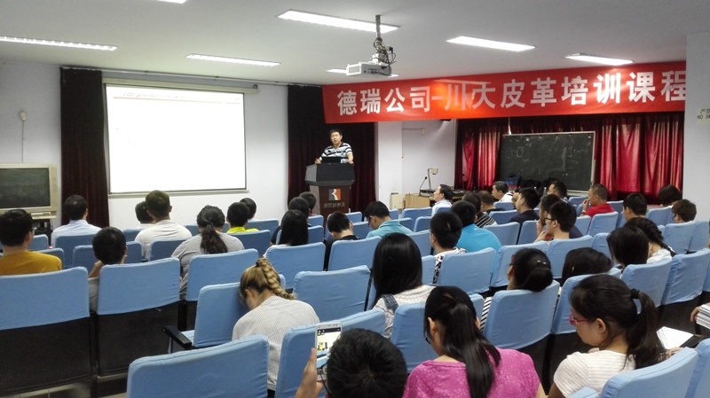 2016年6月15日下午14:00,德瑞(TFL)公司销售副总裁徐怀海先生一行8人应邀来bw必威西汉姆联官网访问并开展培训课程及联谊活动。德瑞—四川大学皮革培训课程在四川大学望江校区皮革楼205报告厅举行,活动由四川大学轻纺与食品学院院长何有节和德瑞公司销售经理姚兵校友主持。德瑞公司代表团、院长何有节教授、皮革系对外联络办公室主任周华龙教授、生物质与皮革工程系党支部书记程海明副教授、学院团委书记苏德强老师、团委副书记李晓秀老师以及轻化工程专业卓越工程师班的学生参与了本次活动。 何有节院长发表了热情洋溢的致辞。何院长首先代表学院向德瑞公司代表团的到访表示热烈的欢迎,他回顾了德瑞公司与川大皮革系的深厚友谊及在人才培养、技术开发方面的合作历程,重点介绍了德瑞公司在皮革环境友好材料开发应用方面所取得的成就,勉励参与课程的同学能在课程和联谊活动中珍惜难得的机会与德瑞公司代表团成员们积极互动。 德瑞公司销售副总裁徐怀海先生对德瑞公司以及皮革行业做了详细的介绍,强调了皮革行业的发展前景如何有节院长所说的“日不落产业”,认为德瑞的重心在于解决皮革行业所面临的现实问题。随后,德瑞公司技术总监周利军校友、高级技术代表何杰校友以“现代制革业的破局——时尚/环保与传统工艺的融合”为题,对德瑞公司在水场准备工段的解决方案做了详细的介绍,并与现场同学进行了热烈深入的交流互动。培训课程第一单元结束后,参与培训课程的师生利用茶歇时间在皮革楼209会议室参加了德瑞公司最新时尚皮革品种路演活动,并与德瑞代表团成员就感兴趣的皮革品种的制作工艺以及皮革化工材料使用情况进行了热烈的讨论。最后,德瑞代表团对皮革涂饰工艺进行了解析,并和参加培训会的同学对工艺细节进行了讨论,整个过程气氛热烈。活动结束后,德瑞代表团和轻纺与食品学院生物质与皮革工程系互赠了礼物。所有参与培训会的师生和代表团成员们参与了后续的联谊活动。 德瑞(TFL)—四川大学皮革培训课程暨联谊活动增强了轻纺与食品学院与德瑞公司的交流,不仅让同学们了解了更多的皮革工艺知识和行业发展前景,更激发了学生对皮革行业传统与环保问题的思考。
