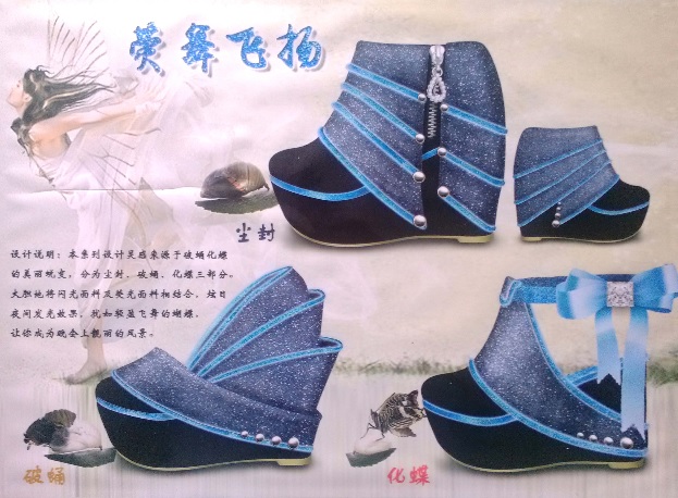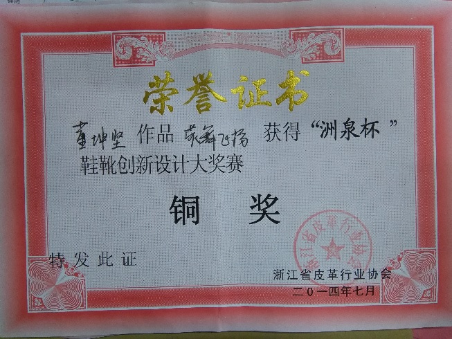 日前,由浙江省皮革行业协会主办的“桐乡·洲泉杯”鞋靴设计大奖赛”落下帷幕,比赛组委会共收到了来自几百位企业和高校选手的作品。本次比赛分为效果图部分和实物鞋制作两个部分,bw必威西汉姆联官网2010级轻化工程专业革制品设计方向的同学在效果图部分比赛中获得了优异的成绩:其中董坤坚同学的作品《荧舞飞扬》获得了大赛铜奖,此外还有部分同学获得优秀奖。(姚云鹤)