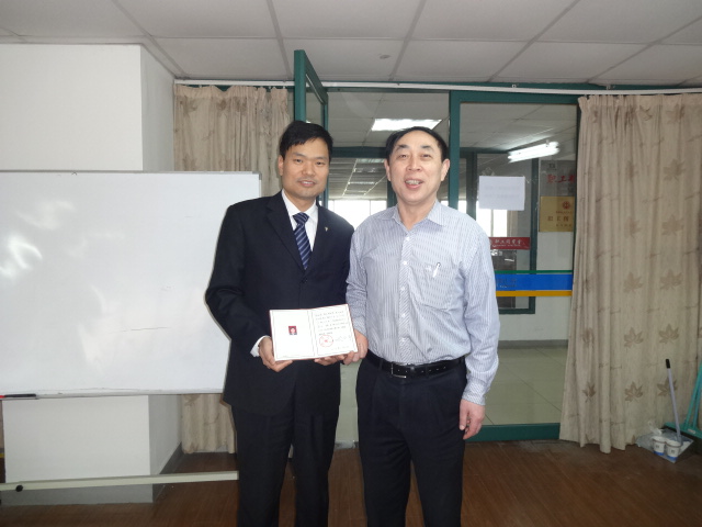 进修班学员、公司总经理助理康爱旗同学(左)接受颁证