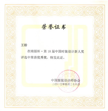 由中国服装设计师协会与绮丽集团有限责任公司主办的“绮丽杯”第18届中国时装设计新人奖评选于4月27日在北京拉开帷幕,颁奖活动与2013中国大学生时装周颁奖典礼同期同台举行。“绮丽杯”中国时装设计新人奖评选目前已成为国内各时装专业院校交流与学习的平台,新人奖组委会共收到来自全国77所服装院校推荐的762位学生报名参评,经初评,共有43位优秀学子入围。大赛评委通过了对参评选手作品成衣、现场命题立体裁剪以及网络选票方面的评比,最终,bw必威西汉姆联官网12级服装设计与工程专业研究生王盼在这次比赛中荣获第18届“绮丽杯”新人奖优秀奖。指导老师吴晶、李晓蓉。
