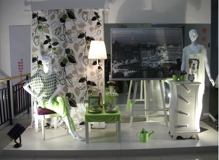 家居生活环境陈列,图中服装为新世家族设计总监吴文娟的设计作品