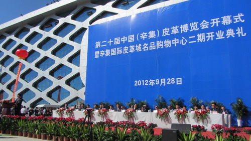 2012年9月28日,第二十届中国(辛集)皮革博览会开幕式暨国际皮革城名品购物中心二期开业典礼在河北省辛集市隆重举行。中国轻工业联合会副会长兼秘书长王世成、中国工程院院士、制革清洁技术国家工程实验室主任石碧、中国皮革协会常务副理事长兼秘书长李玉中、中国服装设计师协会副主席苏葆燕、中国皮革和制鞋工业研究院院长杨承杰、石家庄市人民政府副市长张殿奎、河北省旅游局局长栗进路、河北省商务厅厅长王志欣、辛集市委书记聂英武、辛集市人民政府市长巴利凯、辛集国际皮革城董事长梁国申、四川大学轻纺与食品学院院长何有节、皮革化学与工程教育部重点实验室(四川大学)教授廖学品等领导和嘉宾,来自全国各皮革行业专业市场、生产企业、科研院校、新闻媒体的代表,以及国内外客商和周边游客3000多人参加了开幕式。本届皮博会为期三天,将展出一批适应国内市场需求的新款皮装,以及皮革、皮具、皮革化料、皮衣辅料等230多个品种;同时举行制革业清洁生产院士讲座、中国皮革服装发展形势专家讲座、辛集皮装设计大奖赛颁奖仪式等多项活动。开幕式后,举行了“辛集2013/2014秋冬中国皮衣皮草时装流行趋势发布会”,我国和意大利的设计师展示了最新的皮革、裘皮服装。辛集是中国皮革皮衣之都、国家外贸转型升级专业型示范基地,辛集市国际皮革城是国家AAAA级旅游景区、五星级皮革专业市场。中国(辛集)皮革博览会已经连续成功举办了19届,在促进销售、拓展市场、扩大交流、加强合作等方面发挥了重要作用,已经成为提高“皮都辛集”知名度、宣传辛集和辛集皮革业的重要窗口。第20届皮博会本着“展示形象、广泛宣传、扩大影响、注重实效”的原则,以打造皮都辛集区域品牌为主线,通过展示最新研发设计成果、举办皮革业发展专题讲座及相关文化活动,进一步拓展国内外销售网络,着力推进产业转型升级,加快实现由中国皮都向世界皮都跨越,努力建设世界知名的皮革制品研发、制造和贸易基地,促进辛集市皮革业更好更快发展。 在本次盛会期间,还举行了“皮都国际画廊”落成典礼暨首届名家书画展开幕式。“皮都国际画廊”由辛集国际皮革城投资3000万元兴建,画廊展室总面积6000平方米,展线1000米。本次展览共征集到书画作品500余幅,国家级书协、美协会员作品160余幅,其中辛集籍国家级、省级会员作品就有300余幅。该画廊旨在把文化艺术作品作为产业来经营,把书画文化和皮革文化融为一体,是目前河北省规模最大的书法、绘画集散地之一。 (HJY)