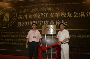 2010年8月28日,四川大学浙江皮革校友会成立大会在浙江海宁市隆重举行。会议与皮革论坛结合进行,来自浙江、上海、广东地区的200多位校友参加本次大会。 中国工程院石碧院士、中国皮革协会名誉会长徐永先生,中国皮革和制鞋工业研究院院长杨承杰先生等多位专家应邀出席了会议。bw必威西汉姆联官网原院长廖隆理教授、四川大学校友会周密副秘书长、何有节副院长及皮革系教师代表林炜和程海明出席了成立大会。据了解,这是四川大学在浙江省所成立的第一个皮革行业的专业性校友会。 参加会议的还有海宁市政府的代表、兄弟学校校友会、四川大学上海校友会、温州校友会、广东皮革校友会等的代表。大会的召开得到了卡森国际控股有限公司、海宁瑞星皮革有限公司、四川达威科技股份有限公司、上海达明贸易有限公司等多家企业的大力支持。 我校校友会周密副秘书长宣读了母校关于同意成立四川大学浙江皮革校友会的批复,并与第一届四川大学浙江皮革校友会名誉会长石碧院士、会长张明发先生一起参加了校友会的揭牌仪式。