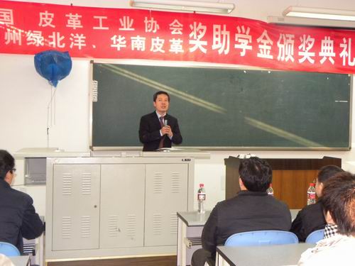2009年12月29日上午9:30,四川大学—中国皮革协会奖学金颁奖典礼及技术交流在江安校区综合楼B510隆重举行。参加本次颁奖活动的嘉宾是中国皮革协会苏超英秘书长;轻纺与食品学院院长、生物质与皮革工程系主任陈武勇教授;轻纺与食品学院党委副书记刘晓虎副书记;生物质与皮革工程系周华龙教授;院分团委副书记苏德强老师;2006级辅导员李晓秀老师;颁奖典礼由院分团委副书记冯国涛老师主持。 首先陈院长代表轻纺与食品学院生物质与皮革工程系对中国皮革协会客人的到来表示热烈的欢迎,对协会长期以来在我校设立奖学金表示忠心的感谢,对所有获奖同学表示诚挚的祝贺。同时,陈院长还介绍了中国皮革协会在行业中的领头作用,为行业的发展方向、行业中相关政策导向以及高校的人才培养各方面都作了很多卓有成效的贡献。也希望获奖同学不辜负设奖单位的期望,学好技术,增长才能,为报效祖国、汇报行业作出楷模。随后,苏秘书长代表协会致辞,他表示来到美丽的成都,来到优美的四川大学江安校区,跟这么多年轻的同学们在一起感到非常高兴。希望同学们能好好把握在校的学习机会,学好技术,在不久的将来行业发展的重任将会落在年轻人的肩上。随后进行了颁奖典礼,本次表彰了在2008—2009年度中表现突出的优秀学生、优秀学生干部、学习进步奖、英语四六级班级通过率奖、英语四六级优秀个人奖等共有30余人才获得表彰。2006级轻化工程专业王艳平同学代表获奖同学作了发言,她认为获奖是学校、企业对个人的肯定,也是我们学习、工作的一个新起点;她更感谢中国皮革协会以及学校领导、老师在培养过程中给予的指导和帮助。最后,苏秘书长还为同学们做了题为《发挥优势、直面挑战、实现皮革行业的可持续发展》的技术交流,他介绍了我国皮革行业的优势;皮革行业的发展成绩;制革行业的结构特点;我国制革行业面临的挑战;促进皮革行业的几项措施以及对年轻人提出了几点希望。让学生进一步了解了行业,看到了希望,更加面临着挑战。同时也深感作为皮革学子任重而道远。希望同学们学好知识与技能,同时调整好工作态度,为今后就业做好心理准备。整个颁奖典礼与交流活动在一片愉快的氛围中结束。四川大学轻纺与食品学院2009年12月29日