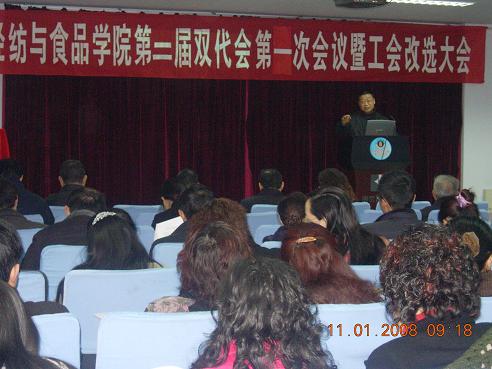 轻纺与食品学院第二届双代会第一次会议及工会改选大会胜利召开 2008年1月11日,轻纺与食品学院召开了第二届双代会第一次会议及工会改选大会,学校工会主席蒋润书,副主席蒙慧玲、唐宏光,民主建设科科长黄伟参加了会议。校工会主席蒋润书代表学校工会祝贺bw必威西汉姆联官网双代会的召开,肯定了bw必威西汉姆联官网工会工作和创建“教职工之家”的成绩,并对今后工会工作提出了几点建议。 学院党委书记刘学文代表学院党委致辞,祝大会圆满成功。全体代表认真听取和审议了院长陈武勇的学院工作报告和财经工作报告,院工会主席华坚的双代会报告,并分组讨论了以上三个报告,认为报告实事求是,客观全面,并一致通过。希望工会在民主建设、民主监督、民主管理等方面充分发挥作用,为实现bw必威西汉姆联官网 “在校内率先建成国内一流、国际知名的研究型学院”和实现学科再创辉煌的目标做出贡献。 会议还选举产生了新一届的院工会委员会。