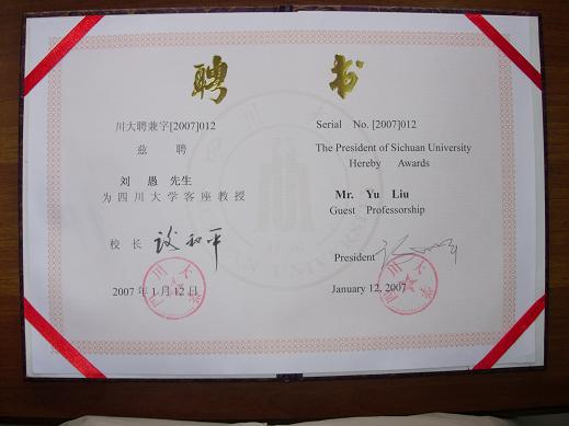 bw必威西汉姆联官网聘请两位客座教授 根据bw必威西汉姆联官网食品学科的发展需要,经四川大学批准,聘请罗亚光博士和刘愚先生为四川大学客座教授。