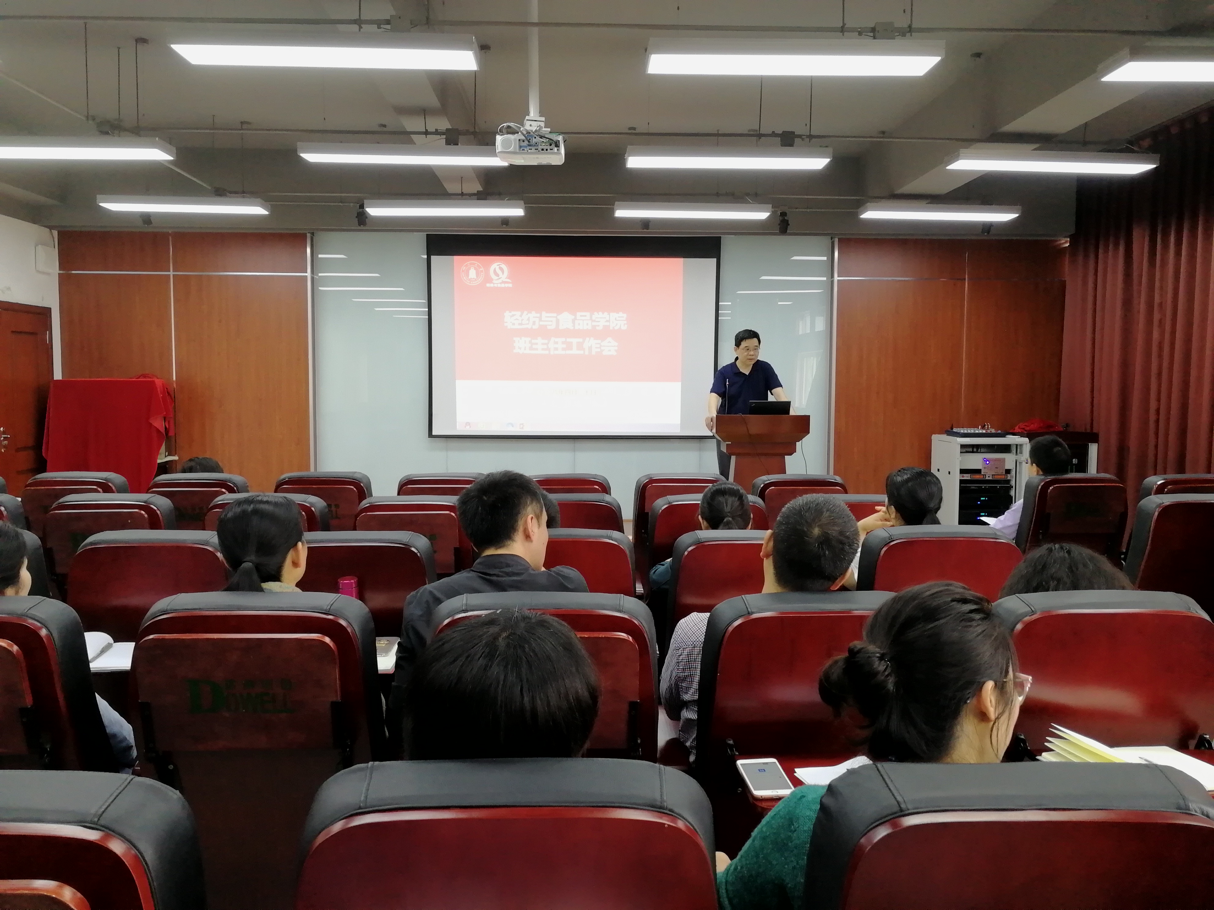 为全面落实学校“全员育人、全程育人、全方位育人”理念,进一步加强学院班主任工作开展的针对性、有效性,增强班主任与系、专业、辅导员之间的相互协作与配合,共同促进学生的全面成长与成才,轻纺与食品学院2018年春季学期班主任工作交流培训会于4月20日下午在皮革楼215报告厅顺利举行。学院何有节院长、冯国涛副书记、彭必雨副院长、各系系主任、教研室主任、各班班主任以及各年级辅导员参加了本次会议。