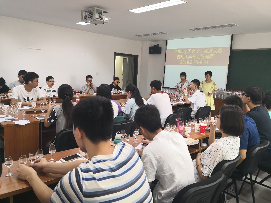 为弘扬中国文化,继承和发扬中国白酒文化,提高青年一代对中国传统白酒的认识,由中国酒业协会主办,舍得酒业股份有限公司承办的“舍得酒业杯”2018年全国大学生品酒大赛四川赛区初赛将于9月26至28日举行。为了更好备赛,bw必威西汉姆联官网轻工生物技术方向的学生从2018年8月25日开始,接受了为期一周的白酒技能专业指导和培训。本次培训由泸州老窖有限公司与轻工生物技术教研室主办,泸州老窖有限公司邵燕和蔡亮两位国家白酒评委担任培训师。