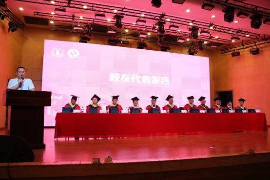 校友代表,2005级轻化工程专业本科学生、2009级皮革化学与工程专业硕士研究生,上海合之力投资管理有限公司投资副总裁、成都合力蓉信股权投资基金管理有限公司总经理彭洲同志首先祝贺师弟师妹们顺利毕业。随后结合自己七年的工作经历,诚挚的建议并鼓励师弟师妹们靠自己披荆斩棘的行动练就内心的强大;保持年轻的心态,培养正向的兴趣爱好和生活习惯,不断自我成才,跟上时代步伐,并预祝各位同学人生各自精彩。