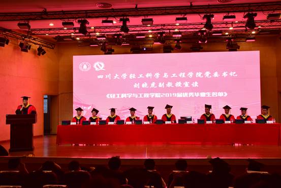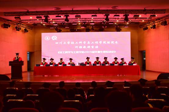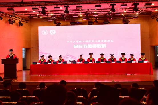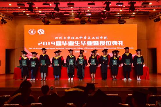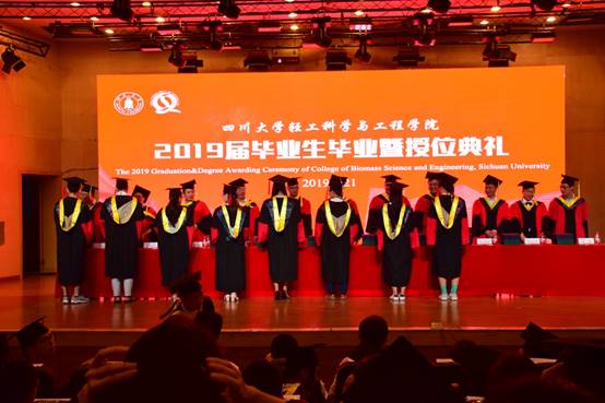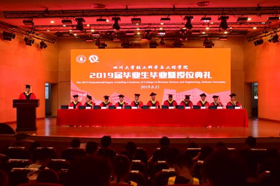 四川大学副校长梁斌教授,bw必威西汉姆联官网学位评定分委会副主席、副院长何强教授,学院党委书记刘晓虎副教授,学院学位评定分委会委员、教授委员会委员何有节教授、彭必雨教授、单志华教授、朱谱新教授、李国英教授、周荣清教授、金勇教授、阎斌教授出席典礼并在主席台就座。教师代表、校友代表、学生家长代表、学生代表以及2019届全体毕业生参加了典礼。典礼由学院党委副书记冯国涛主持。