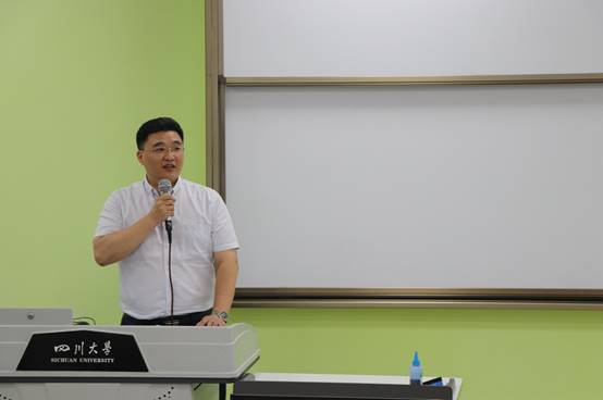 首先,学院党委书记刘晓虎副教授围绕三个关键词作了开班致辞。第一是“祝贺”,他代表学院党政、创新班的主体学院,向经过严格选拔进入创新班的同学以及开班仪式的如期举办表示最热烈的祝贺。第二是“感谢”,刘书记回顾了创新班的创建过程,由衷感谢四川大学把创新班的创建重任托付给bw必威西汉姆联官网;感谢兄弟学院和3个国家级平台的强势加盟,合力达成集全校生物质领域的优势资源,参与并推动实现国家生物质资源开发利用发展战略的共同愿景;感谢创新班创建过程中,学术领军人物、干部、师生的全勤付出和参与努力。最后是“期待”,即基于已获得的2个国家级“新工科”研究与实践项目的强力支撑,组建了一支由高层次人才领衔的指导教师队伍,拥有一批有志于从事生物质资源开发利用的优秀学生,期待创新班的建设与发展能够成为中国同类高校“新工科”建设的范式和模板,期待历届创新班能够成为学校建设“中国特色、川大风格”世界一流大学进程中不可忽视的新势力和排头兵。