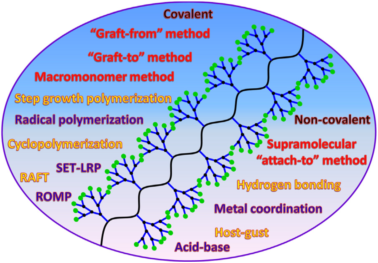 该论文在总结辜海彬副教授课题组近年来在该领域研究成果的基础上,综述了近十年来树枝化聚合物在合成和应用方面的研究进展。主要介绍了“大分子单体聚合法”、“graft-to法”、“graft-from”和“超分子连接法”等合成技术的最新进展,概述了树枝化聚合物在自组装、生物医学、刺激响应性材料、催化和光电子器件等领域的应用现状,指出了树枝化聚合物研究领域存在的问题,并对其发展趋势进行了展望。