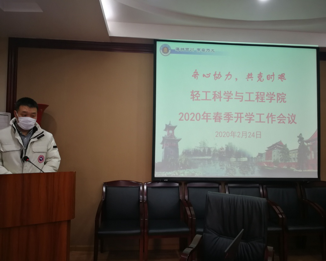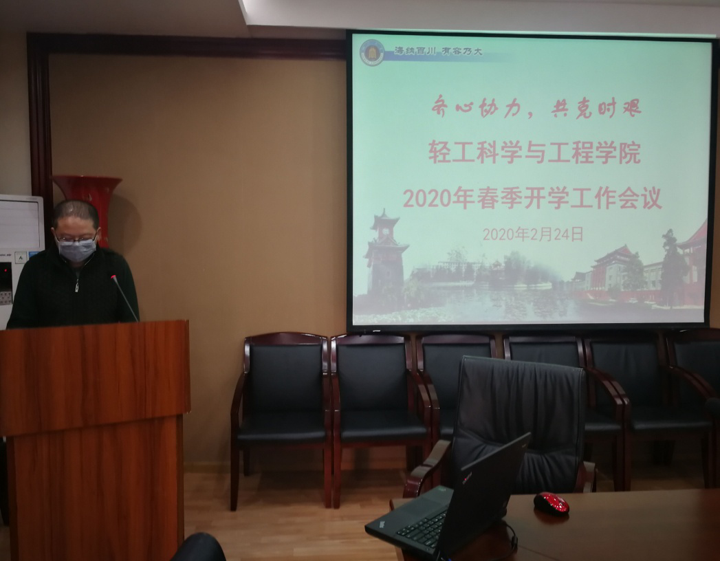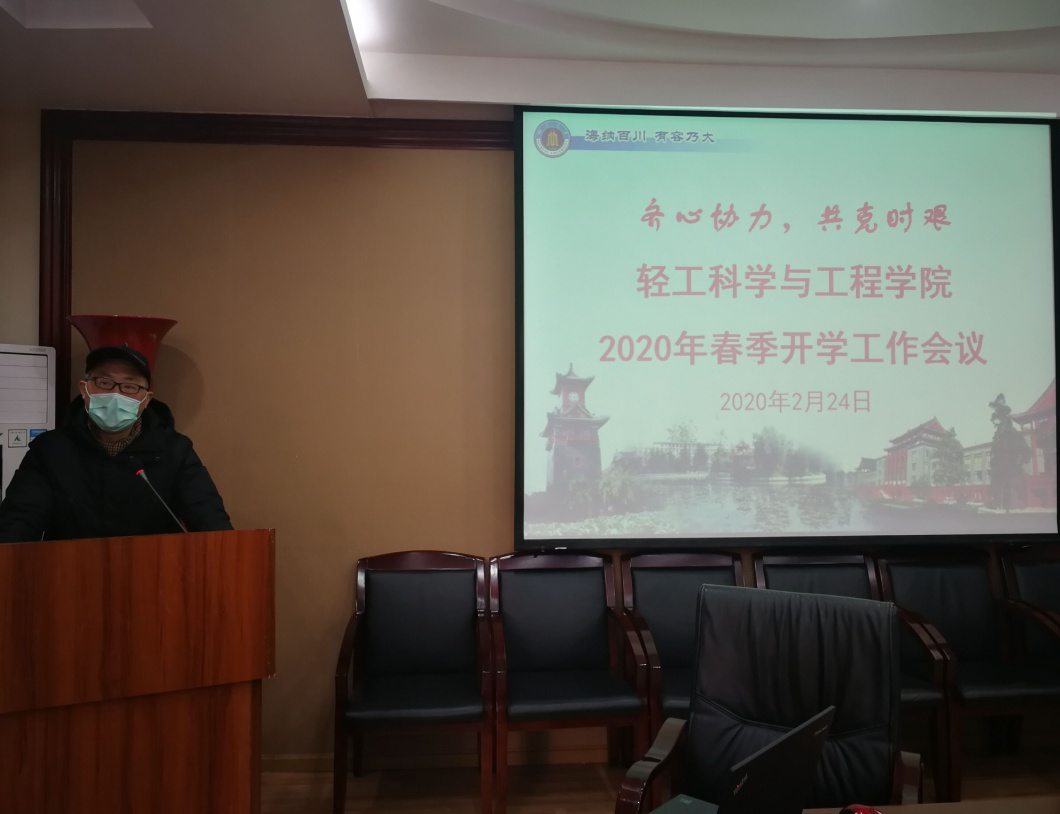 何有节院长围绕学校的指导精神,从全面组织做好第五轮学科评估工作和“先进轻工技术与环境保护”一流学科群验收的收官工作,对本年度工作进行部署。提出在新冠肺炎防控的非常时期,希望全院教职工团结一心,共克时艰。