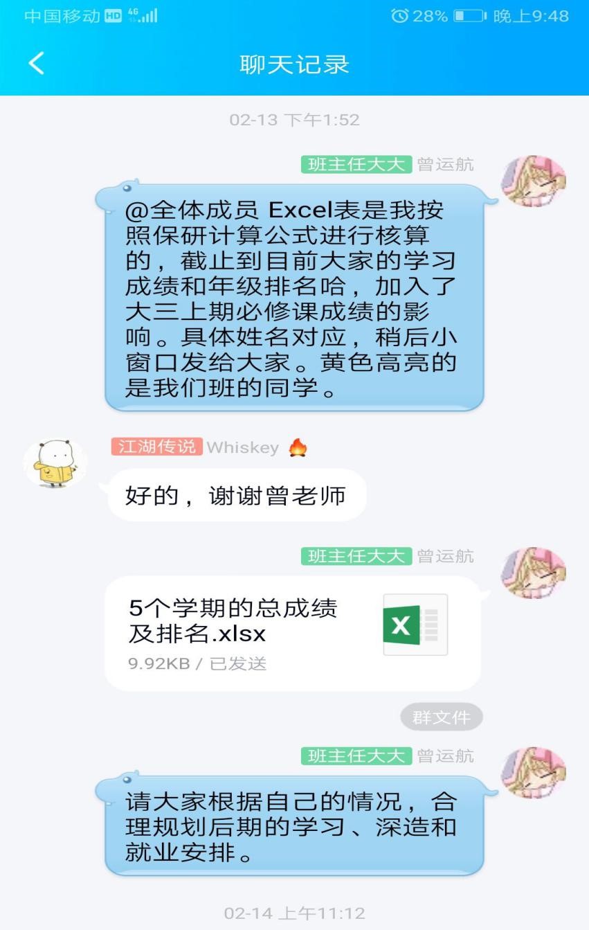“停课不停学”并非只是一句口号,除了线上课堂教学,班主任老师根据学生学习情况,针对就业、出国深造、考研三条路径,积极为学生出谋划策,点对点助力学生发展路径,让学生心里踏实。