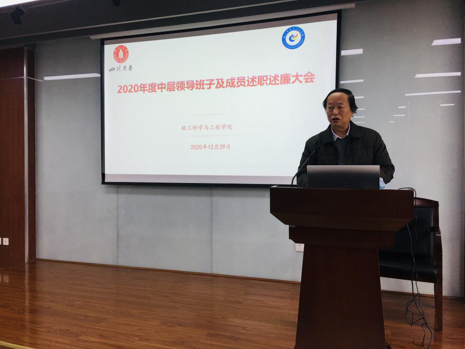 何有节院长从德、能、勤、绩、廉及不足六个方面做工作汇报,重点汇报了“先进轻工技术与环境保护”双一流重点学科群建设周期评审结果、年度人才培养、科学研究等方面。