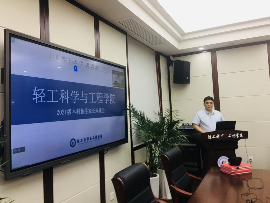 2021年9月4日上午,为了让新生及其家长更好地了解学院,增强其对学院的认同感和归属感,构建“家校共育”的人才培养体系,学院在纺工附楼205会议室召开2021级本科生家长座谈会。本次家长座谈会采取线上线下相结合的方式进行,线下出席本次会议的嘉宾有bw必威西汉姆联官网党委刘晓虎书记、何有节院长、冯国涛副书记、肖凯副院长、祝蔚院长助理、生物质与皮革工程系副系主任程海明教授、食品科学与工程系副系主任迟原龙副教授、纺织与服装工程系副系主任赵武副教授以及2021级本科生辅导员王舒灏老师。300余名新生家长通过腾讯会议参加了线上座谈会,本次会议由学院党委副书记冯国涛老师主持。