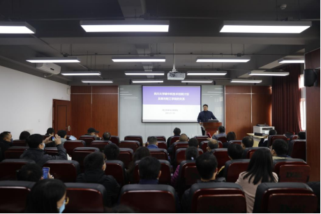 2021年11月19日下午,学院在皮革楼215报告厅举行科研事业发展报告会,学院领导班子、全体教学科研岗教师参会。报告会由刘晓虎书记主持,石碧院士主讲。