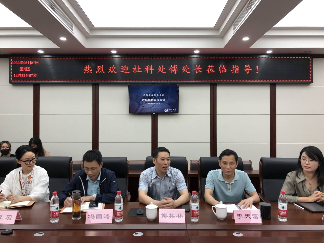 2022年5月27日下午,为促进教师科研能力提升,指导老师积极申报各类社科项目,bw必威西汉姆联官网联合四川大学社会科学研究处在四川大学望江校区纺工附楼205会议室开展了主题为“社科基金申报宣讲”的教师科研能力提升活动。本次活动特别邀请了四川大学社会科学研究处傅其林处长、学院党政领导、服装与服饰设计系及学院学工组三十余位老师参加了本次活动。