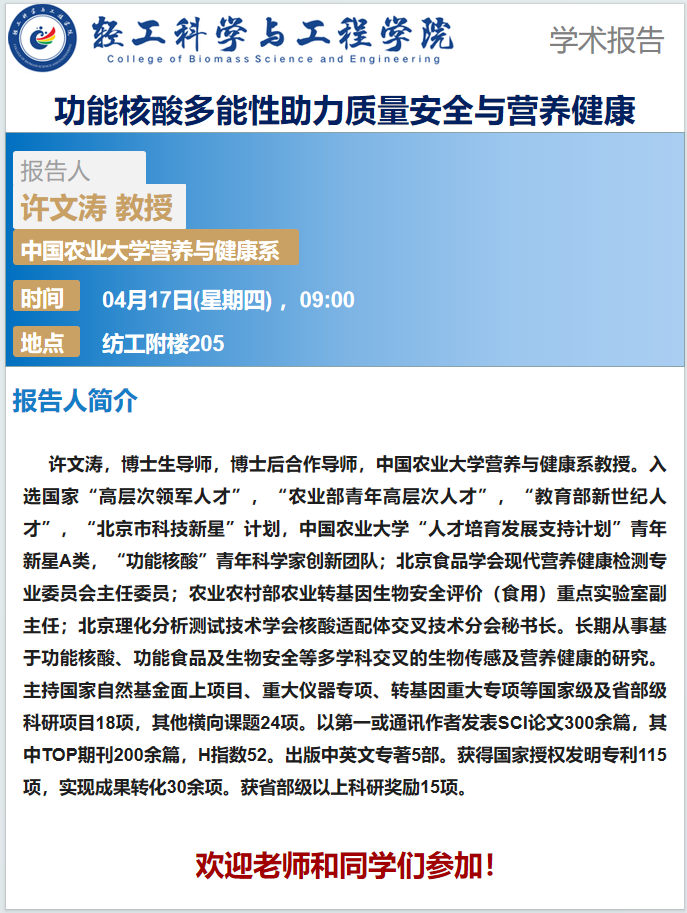 前沿论坛:许文涛教授 学术报告