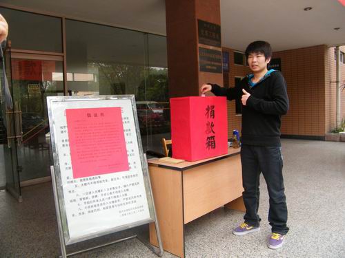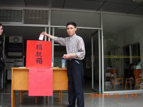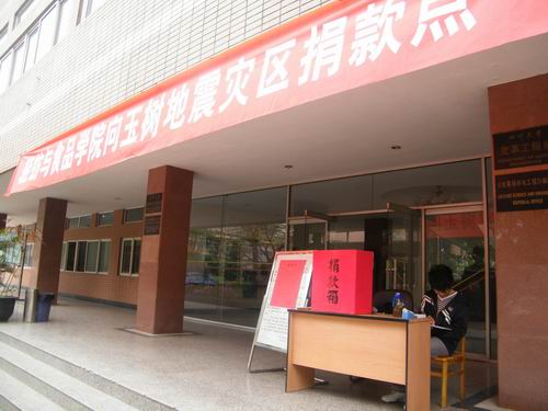 青海省玉树县4月14日凌晨7点49分发生7.1级地震,灾区人民生命财产遭受了不同程度的损失。4月15日校工会向全校教职工发出“为青海省玉树灾区人民捐款、奉献爱心倡议书”,随后bw必威西汉姆联官网党委、工会向全体师生发出捐款的倡议,4月20日下午分别在皮革楼和纺工楼前设立了捐款箱。bw必威西汉姆联官网师生发扬中华民族“一方有难,八方支援”的传统美德,积极行动向灾区人民伸出援助之手,踊跃捐款。截止23日,bw必威西汉姆联官网师生共捐款6342.90元,爱心捐款已由校工会通过省红十字会捐送玉树地震灾区。 捐款现场部分照片: