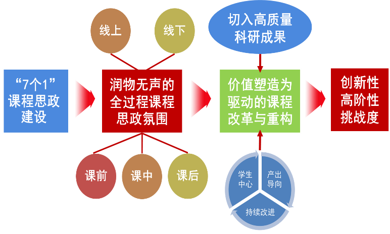 结合“新工科”“一流专业”“一流课程”建设的要求,针对传统教学过程中存在的重知识传授,教学内容深度不够、前沿性与时代性不强,与一流人才培养目标不匹配;教学方法单一,重“教”轻“学”,学生学习兴趣不高,主动性不强,参与度不高;学业评价方法单一,课程挑战度不高等问题,有针对性探索“立德树人-目标重塑-资源整合-方式重构-优化评价”的课程改革思路,构建以价值引领为驱动的“探究式学习平台”,帮助学生基于所学知识开展自主探究式学习,并在探索前沿和未知的历程中实现知识的掌握、能力的提升、思维的创新及思想与素养的升华。