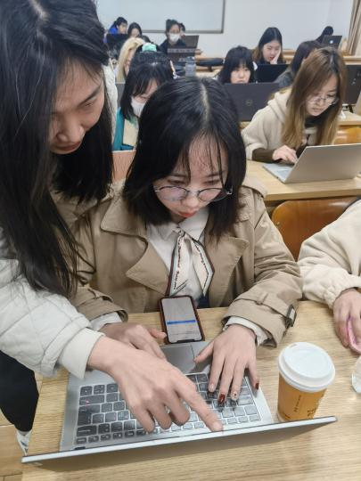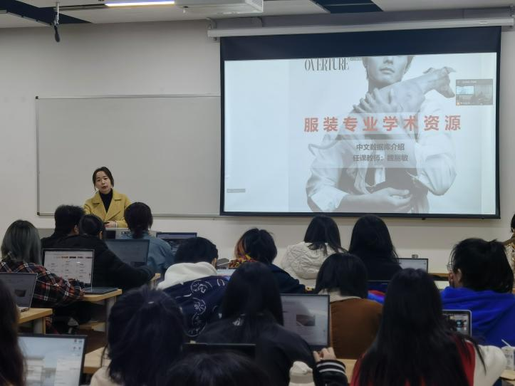 随后,王圣洁老师介绍了“SCIE(ISI)”、“EI”等在内的英文数据库资源及相关索技术,同时对专利查询与申请、论文查重与投稿以及艺术图片数据库等方面的知识进行了补充阐述。讲解之余,王圣洁老师结合“智能服装”这一主题,指导同学们现场进行文献检索,并对每位同学的疑问进行一一解答。