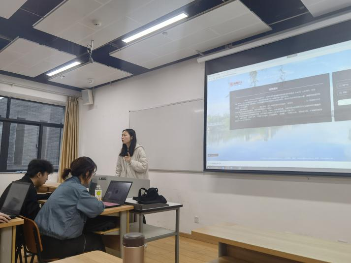 在教学过程中,魏丽敏老师介绍了我校图书馆所具有的包括“中国知网”、“万方数据库”、“维普数据库”等在内的中文数据库资源及服务网站,跟同学们分享了包括有效关键词的选取技巧、作者关系网络分析等相关内容。