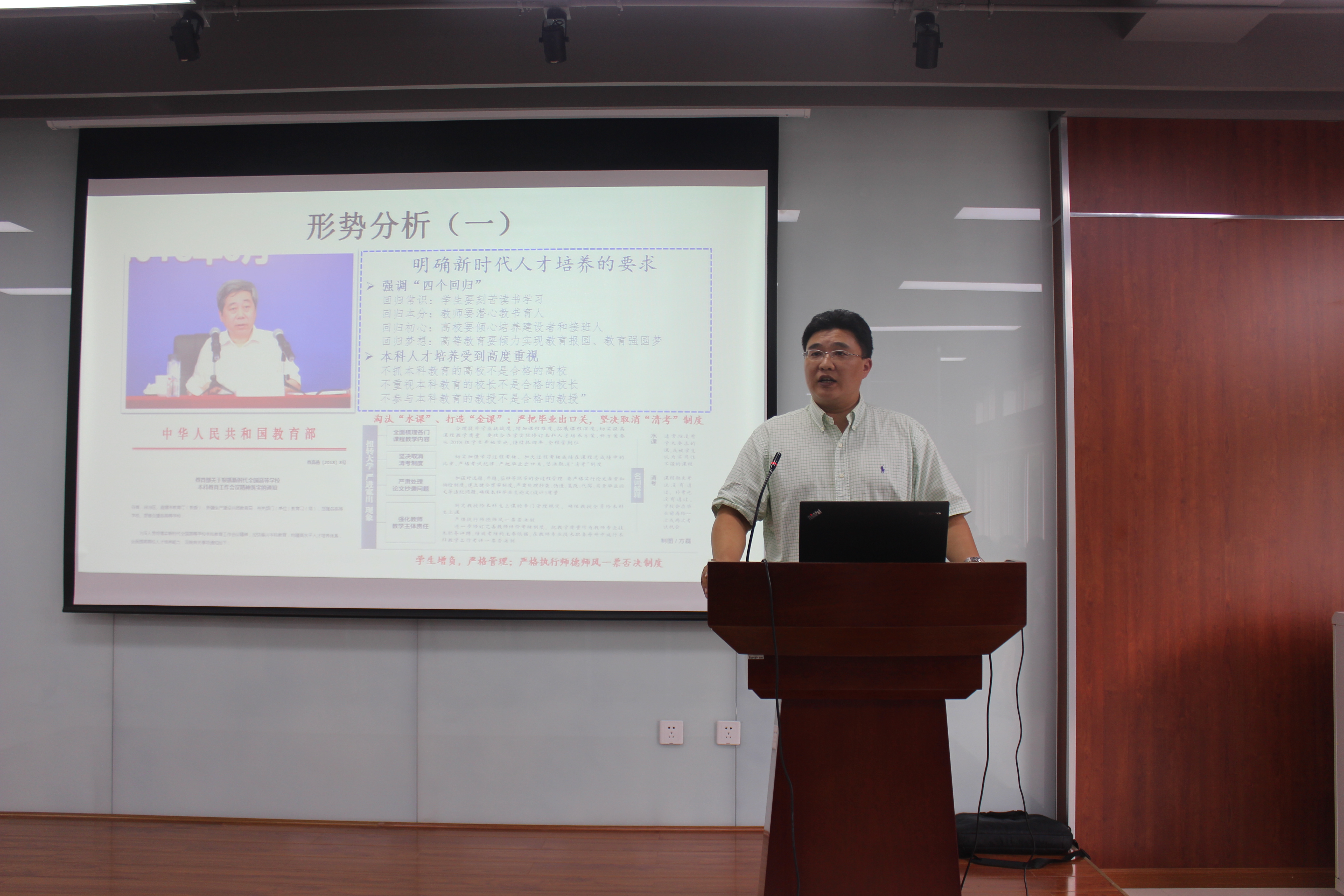2018年911日下午三点,学院在皮革楼报告厅召开全院教师大会,学院党委书记刘晓虎代表学院党政向全体教师做了开学形势报告。
