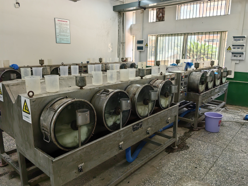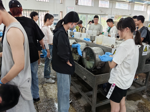 2020级轻化工程专业本科生正在进行兔皮鞣制实验