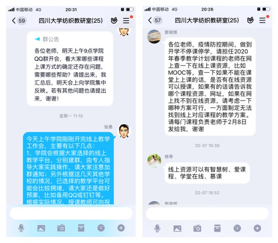 新学期伊始,线上教学活动如期开展。纺织工程教研室按照学院部署,对线上课程进行督查,本着不影响教学的原则,旁听了杨琴老师的《纺织品染整工艺学》,姚云鹤、赵武老师的《表现色彩》,郭荣辉、朱谱新老师的《纺织品功能整理》,尚娇娇、兰建武老师的《纺织学术报告》,吴芳、吴晶老师的《时装摄影与广告》。老师们主要采用了腾讯会议和QQ视频进行教学、师生互动,配合超星学习通签到,布置作业等,他们都能熟练地使用线上教学工具,较好地完成了线上教学任务。