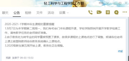 学院通过QQ群提醒教师做好上课准备