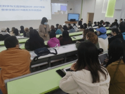 其次,年级大会首先由余昕玲老师对学生在上一学期的专业整体学习情况进行了分析与纵横对比,然后由教师和优秀学生代表进行了经验分享。