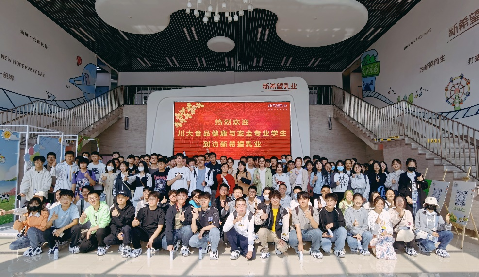 本次“轻访学”第二站是位于郫都区的新希望乳业有限公司。新希望乳业隶属于新希望集团,新希望集团是中农业产业化国家级重点龙头企业。公司两位讲解老师首先为同学们先后介绍了新希望集团的历史、农牧与食品、化工与资源、地产与基础设施、金融与投资四大产业集群。随后,两位讲解老师带领同学们参观了新希望研发中心和干净整洁的园区,错综复杂的乳品输送管道映入眼帘,通过老师们系统全面的讲解,同学们了解到新希望乳制品产业发展历程以及乳制品加工技术。最后,四川新希望乳业有限公司张宗元副总经理与同学们进行了面对面交流,鼓励同学们认真学习专业知识,并欢迎同学们毕业后为加入新希望团队。