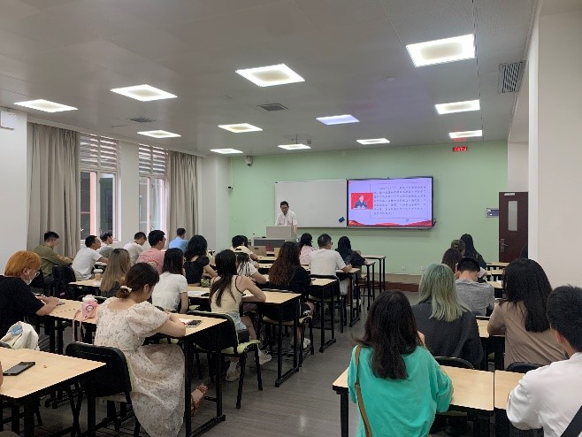 在全党开展学习贯彻习近平新时代中国特色社会主义思想主题教育之际,学院彭必雨院长于2023年6月9日上午在基础教学楼A316为2023届本科毕业生党员讲授了题为“胸怀国之大者,为中国现代化贡献青春力量”的专题党课。本科生第三党支部书记贺婷老师、2019级本科生辅导员贾欣驹老师与全体2023届本科毕业生党员参加了党课学习。本次专题党课由学院党委冯国涛副书记主持。