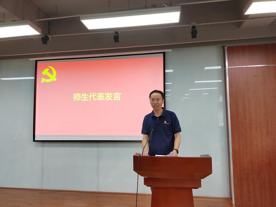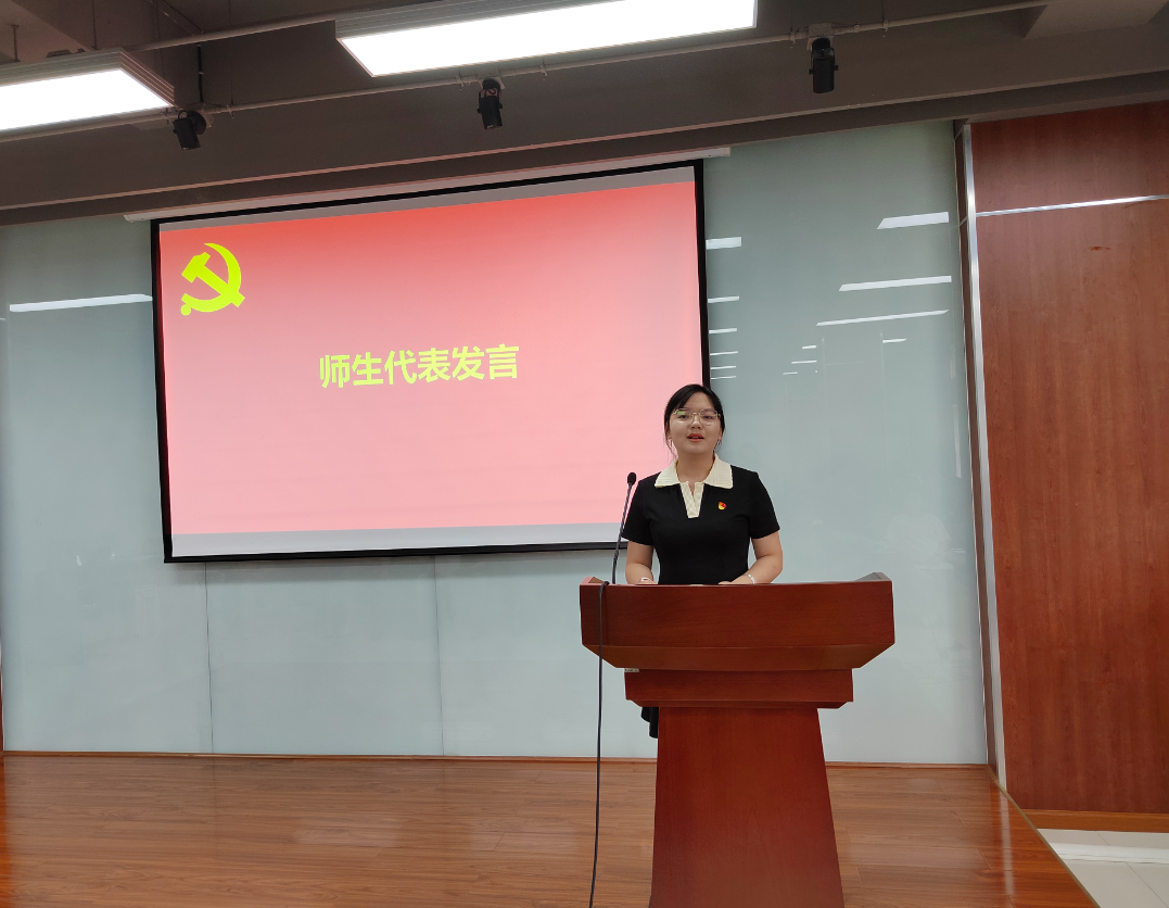 宣誓结束后,陈胜同志、张彤同志、张艺馨同志分别代表先进支部、优秀党员和新发展党员代表作了大会交流发言。优秀代表和新发展党员纷纷表示,将继续以先进荣誉为动力,在党的光辉指引下,进一步做好本职岗位工作,积极担当作为、勇毅前行,为学院的发展攀得更高、走得更稳、行得更远。