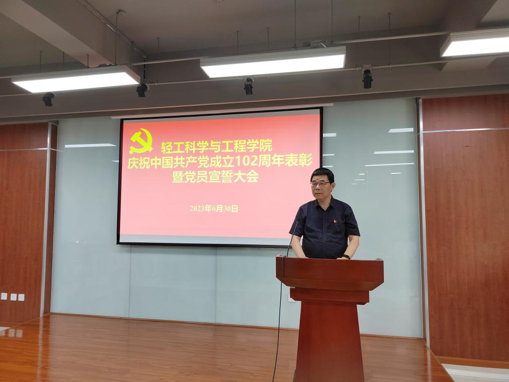 2023年6月30日上午,bw必威西汉姆联官网在皮革楼215报告厅隆重举行庆祝建党102周年表彰暨党员宣誓大会。学院班子成员、两委委员、支部代表、获奖支部、获奖个人及新发展党员代表参加本次会议。会议由学院院长彭必雨同志主持。