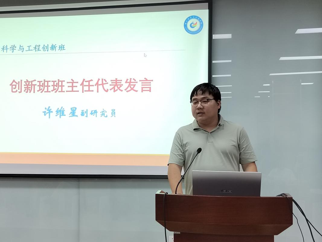 接下来,班主任许维星副研究员寄语同学们越努力、越幸运,在崭新平台上脚踏实地、不负时光。2021级创新班学生代表石鑫同学介绍了个人进入创新班平台后的成长经历,并分享了学习心得体会。