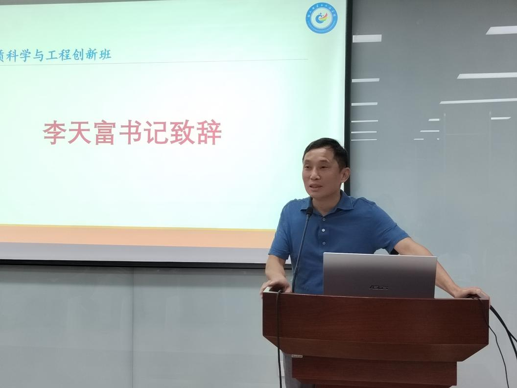 首先,学院党委李天富书记致辞。李书记代表学院党政向经过选拔进入2022级创新班的40名同学表示热烈祝贺,并表示学院将一如既往在教学保障、条件保障与管理保障等方面大力支持创新班的建设与关心同学们的成长。同时,李书记希望创新班同学能沉下心来、努力钻研,在生物质科学与工程创新班平台上继续锻炼自己、不断提升自己,成为更好的自己。