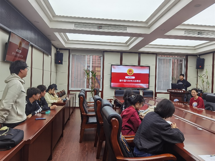 为深入开展政治理论学习,认真学习习近平总书记在庆祝中华人民共和国成立74周年招待会上的重要讲话,加强全体党员爱国意识,增强“四个自信”, 2023108日下午,bw必威西汉姆联官网本科生第二党支部于望江校区纺工附楼205会议室开展“庆祝中华人民共和国成立74周年”主题学习活动。